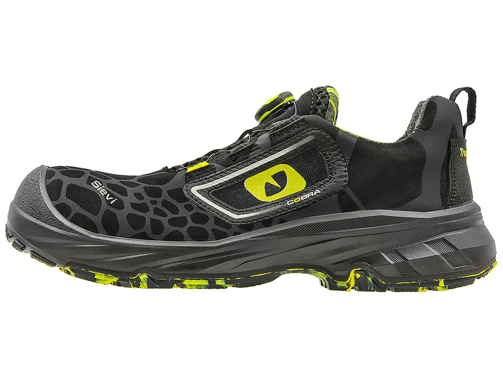 Arbetssko från Sieve. Nya kollektionen Cobra med komposittåhätta och spiktrampskydd i stål. Extra tålig och halksäker yttersula. Världens mest avancerade häldämpning, baserad på elasticitetselementet Sievi FlexEnergy. Elementet binder den uppstående rörelseenergin och mer än 55 % av energin återgår till ditt steg.